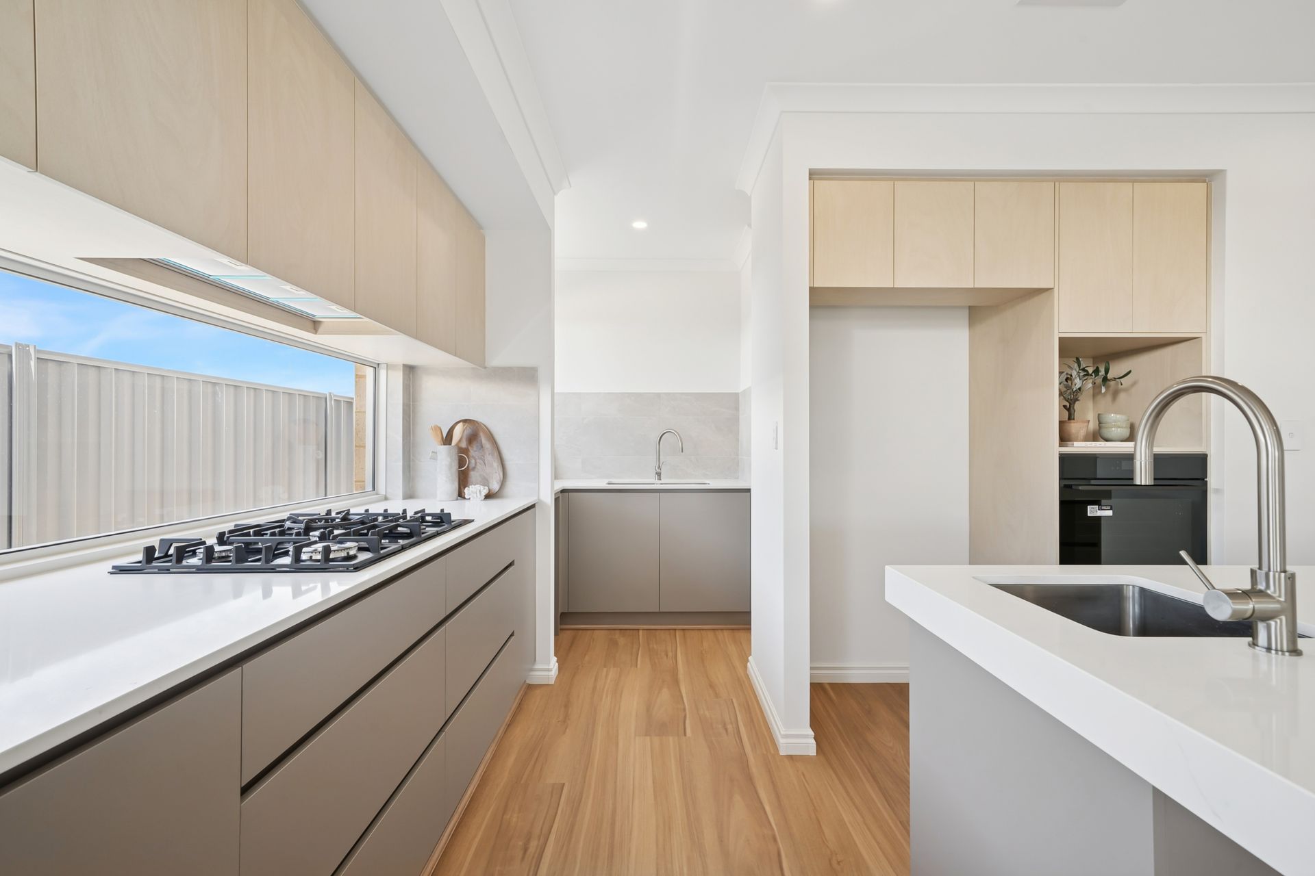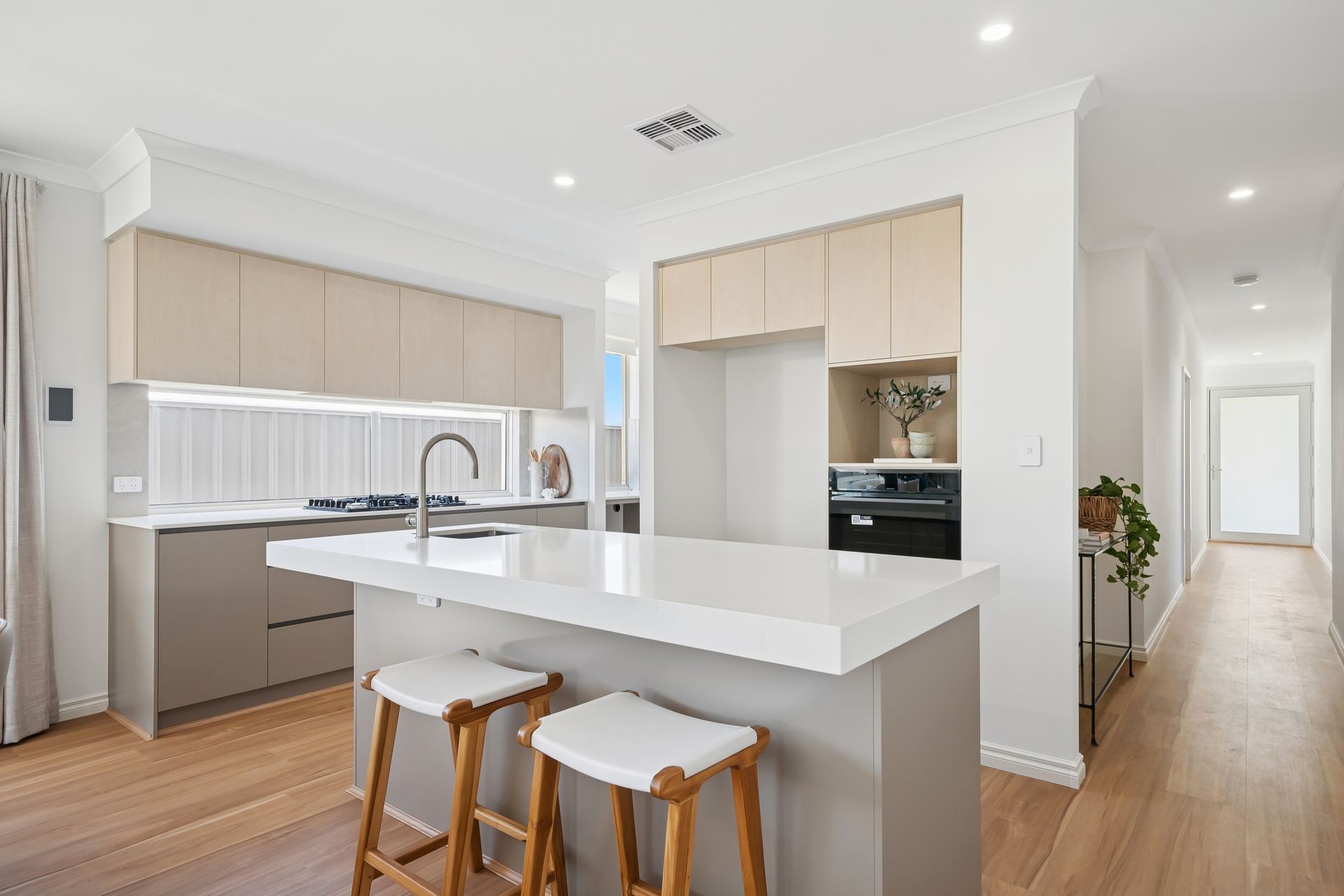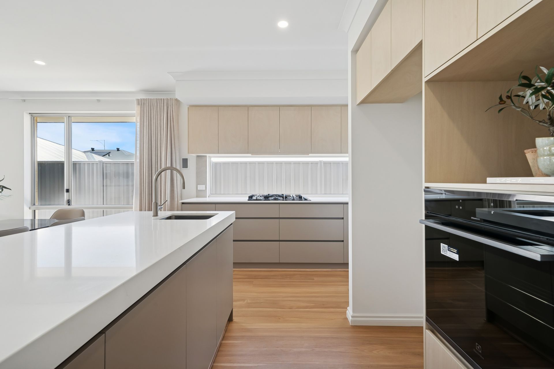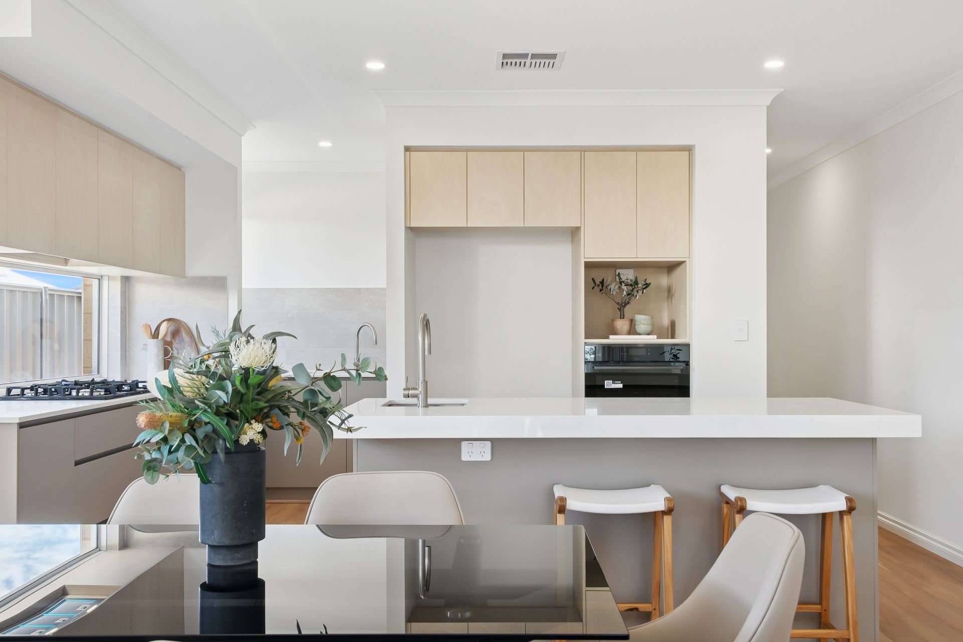 The open-plan living, dining, and kitchen areas are light-filled and flow seamlessly to the alfresco, perfect for relaxing and entertaining. The chef's kitchen features stone benchtops, scullery and walk- in pantry, Oliveri plumbing fixtures and quality appliances, catering to all your culinary needs.