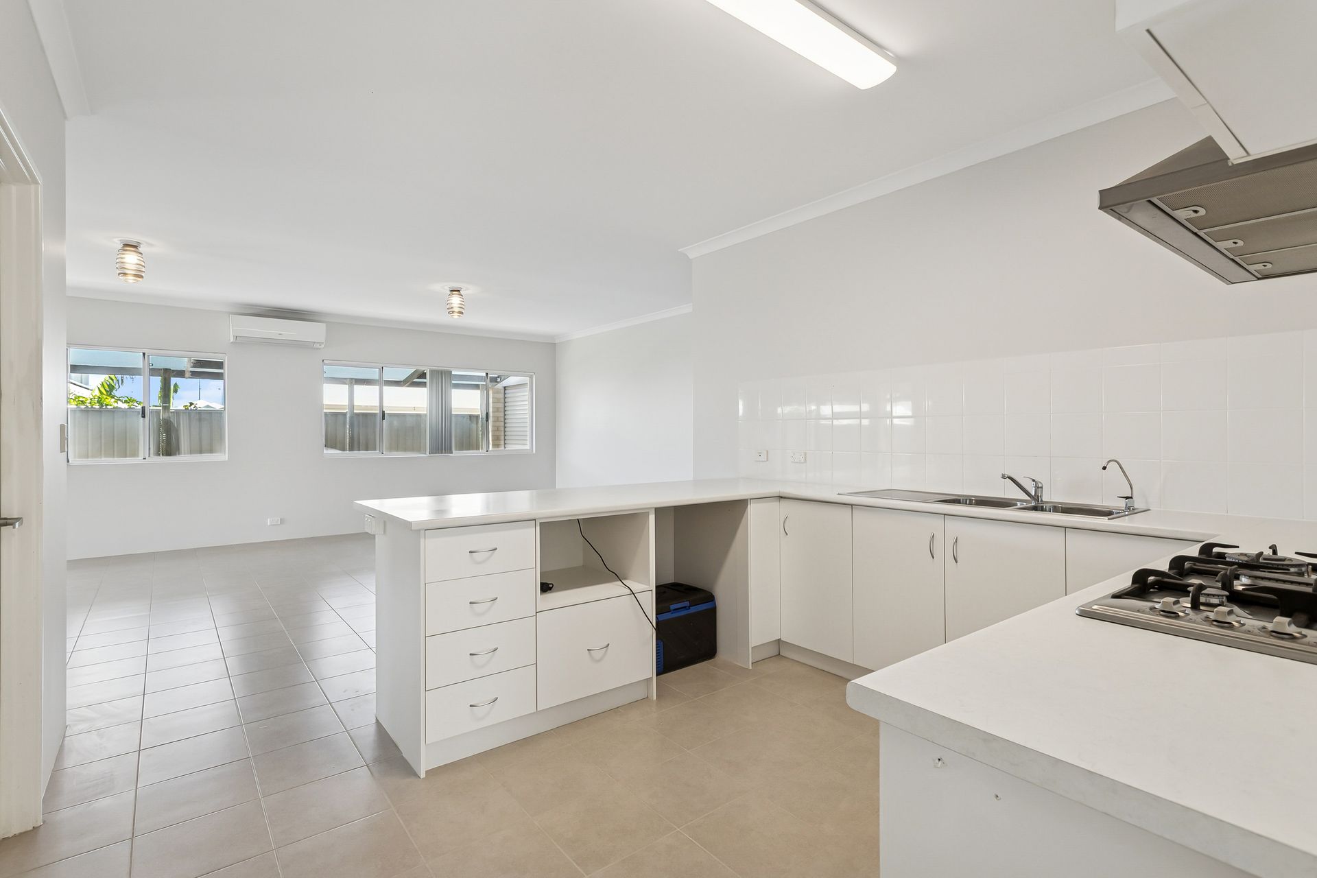 • Kitchen overlooks the open plan living/dining area. Provides, Stone benchtops, Walk in pantry, Dishwasher space, Gas cooking, Stainless steel canopy ranghood and overhead cupbaords with room to add more to your liking.