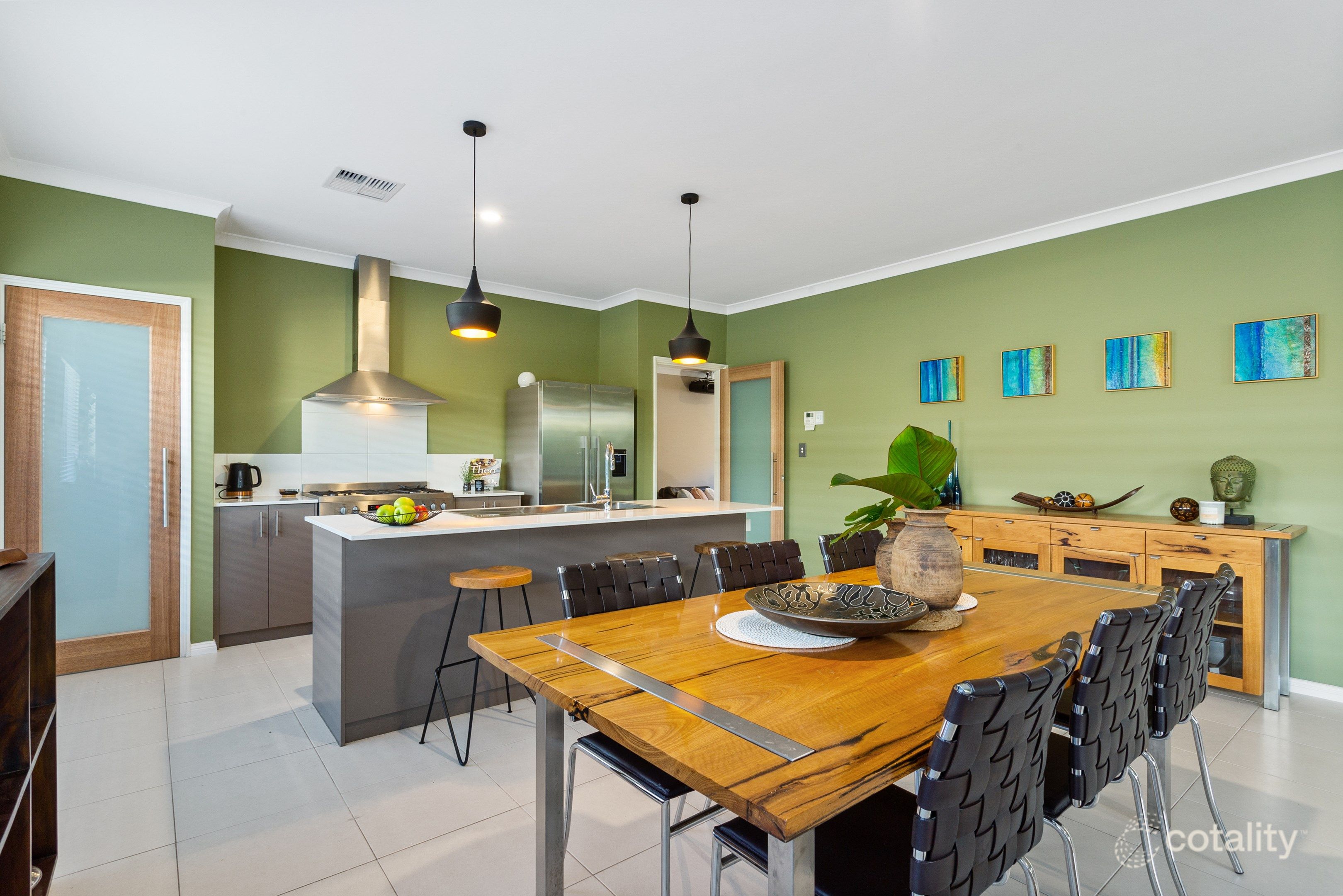 * Kitchen with pendant drop lighting, plumbed fridge recess, large freestanding oven, rangehood and pantry, breakfast bar