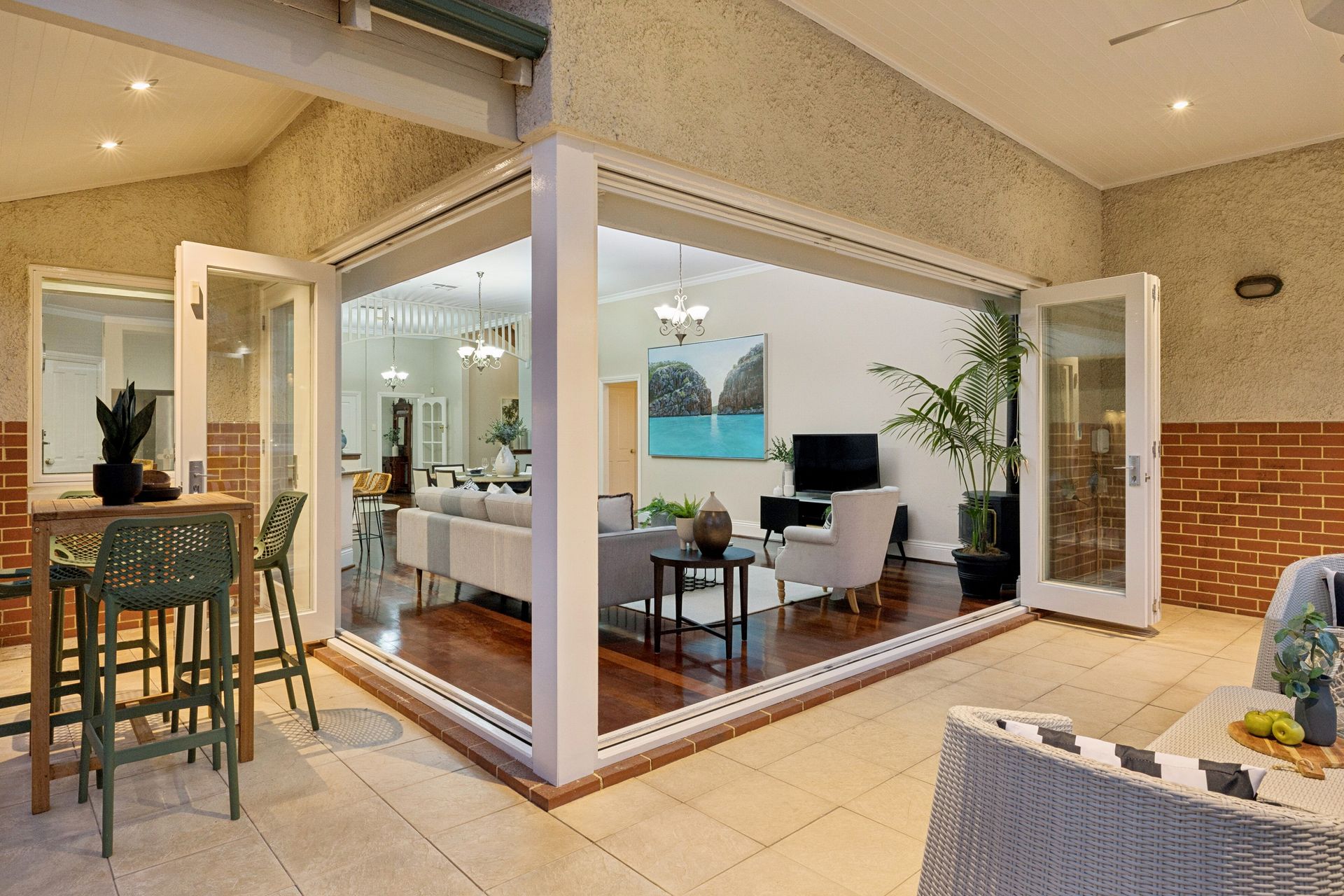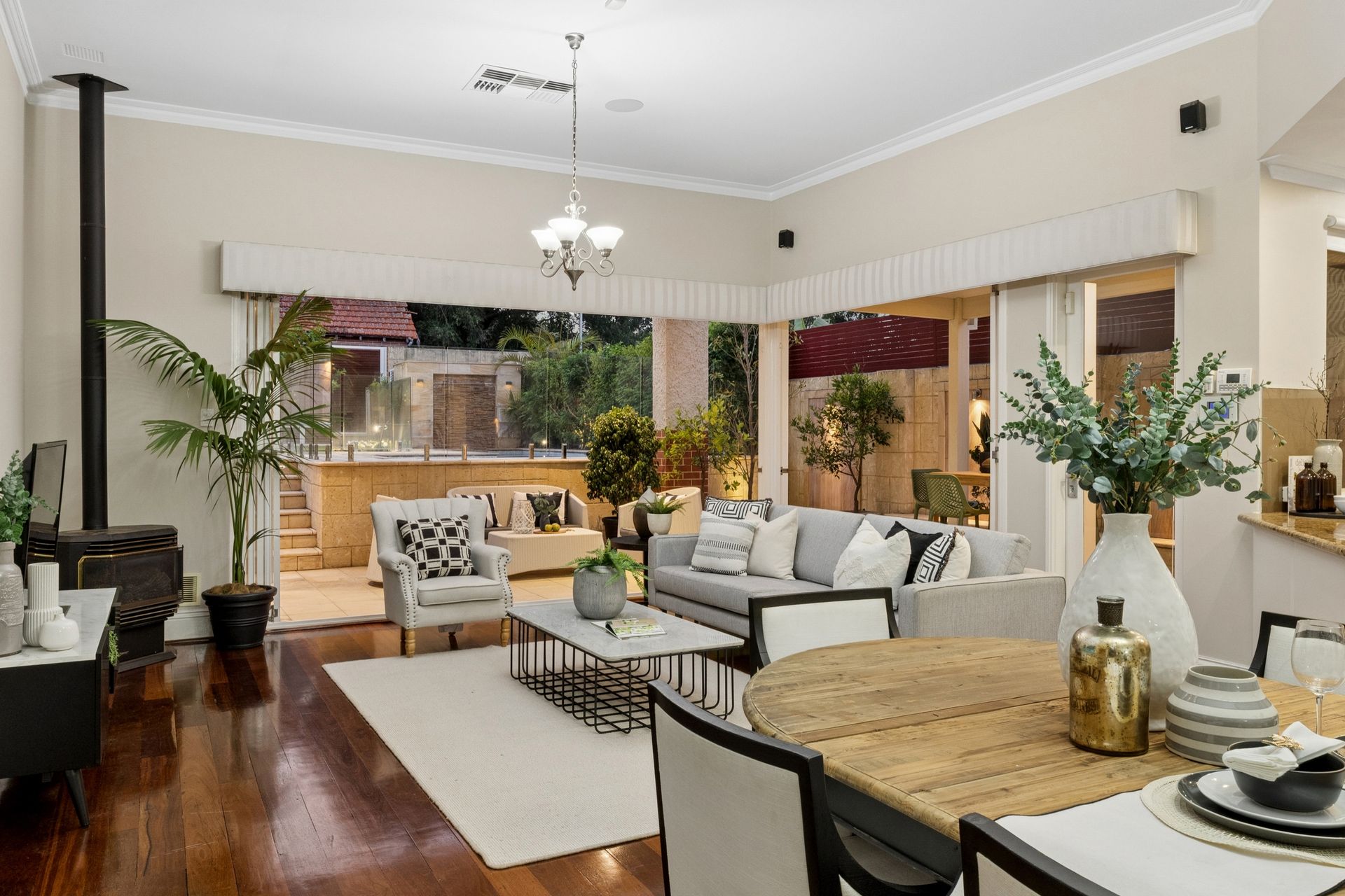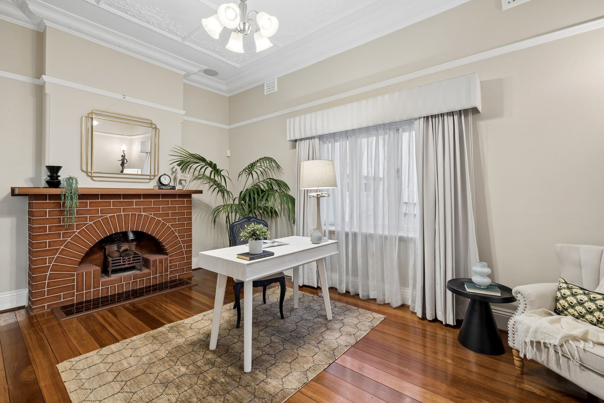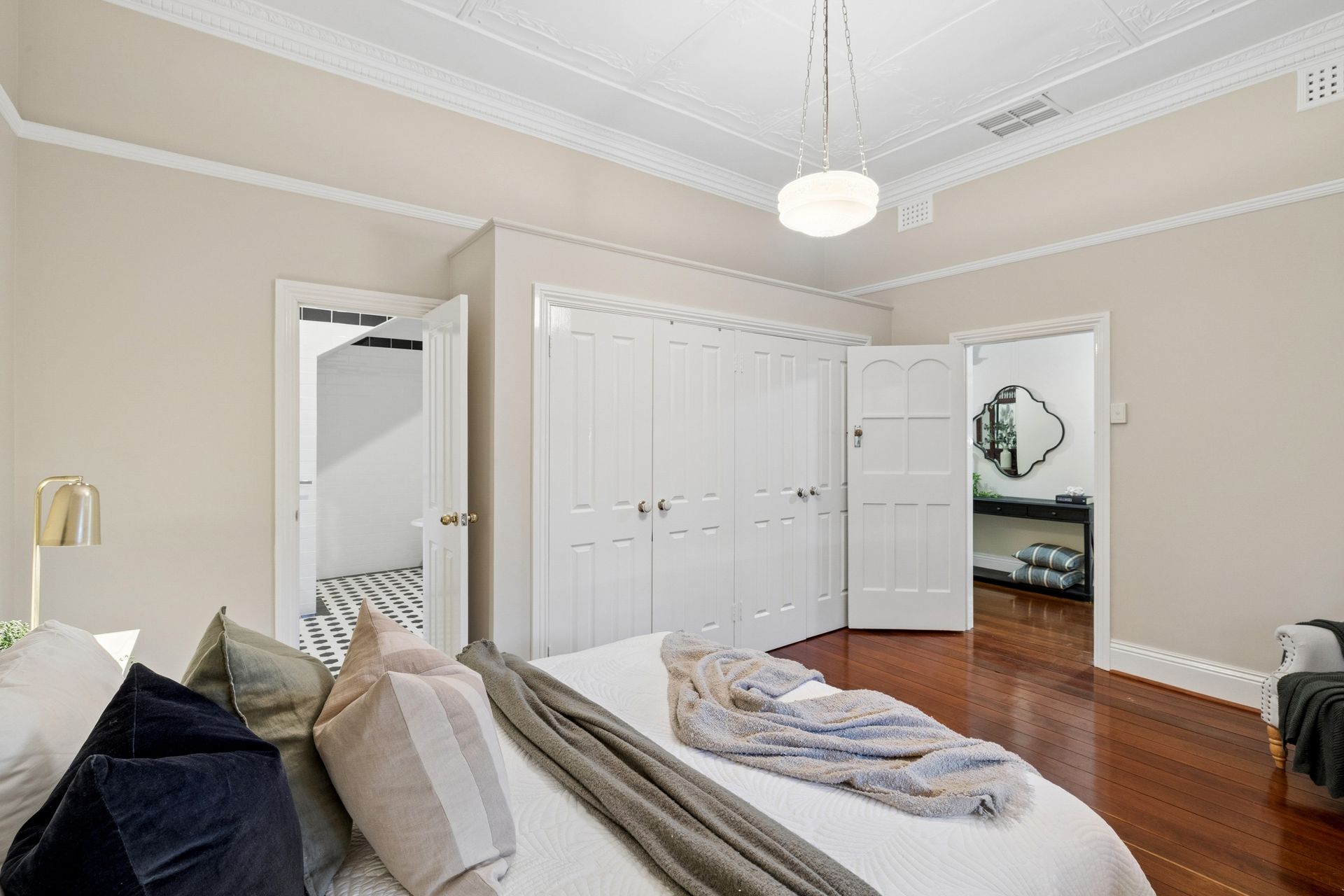 • Formal living areas with ornate ceilings and stunning wide-board floors.