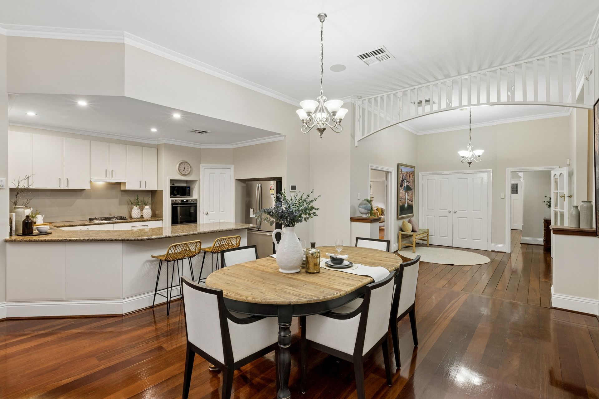 • Grand jarrah staircase opening up to an upstairs children's wing