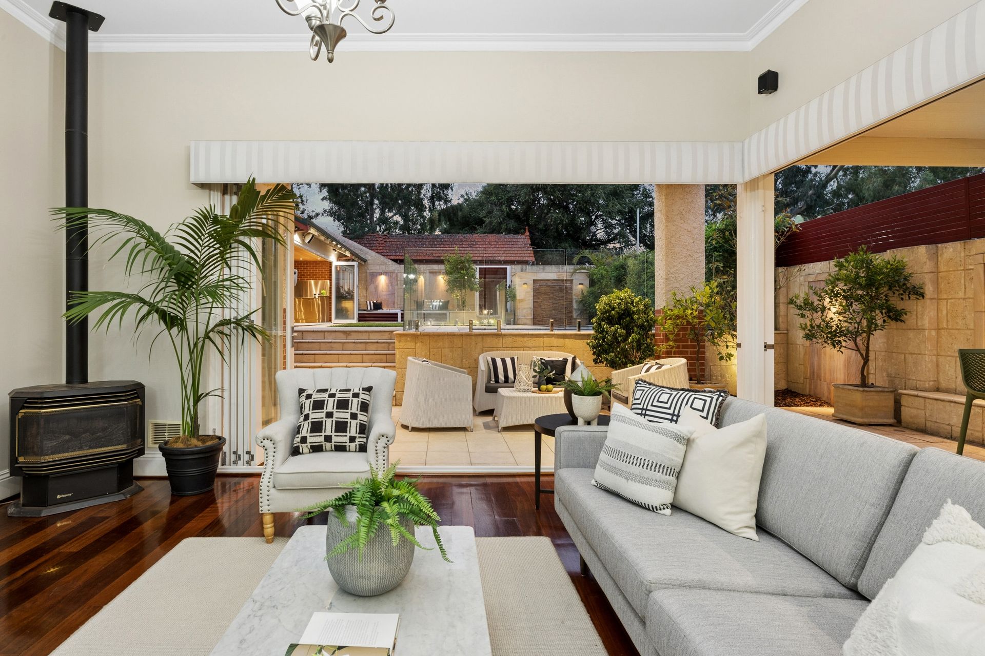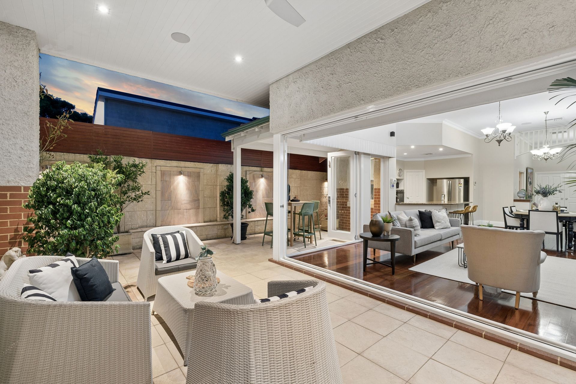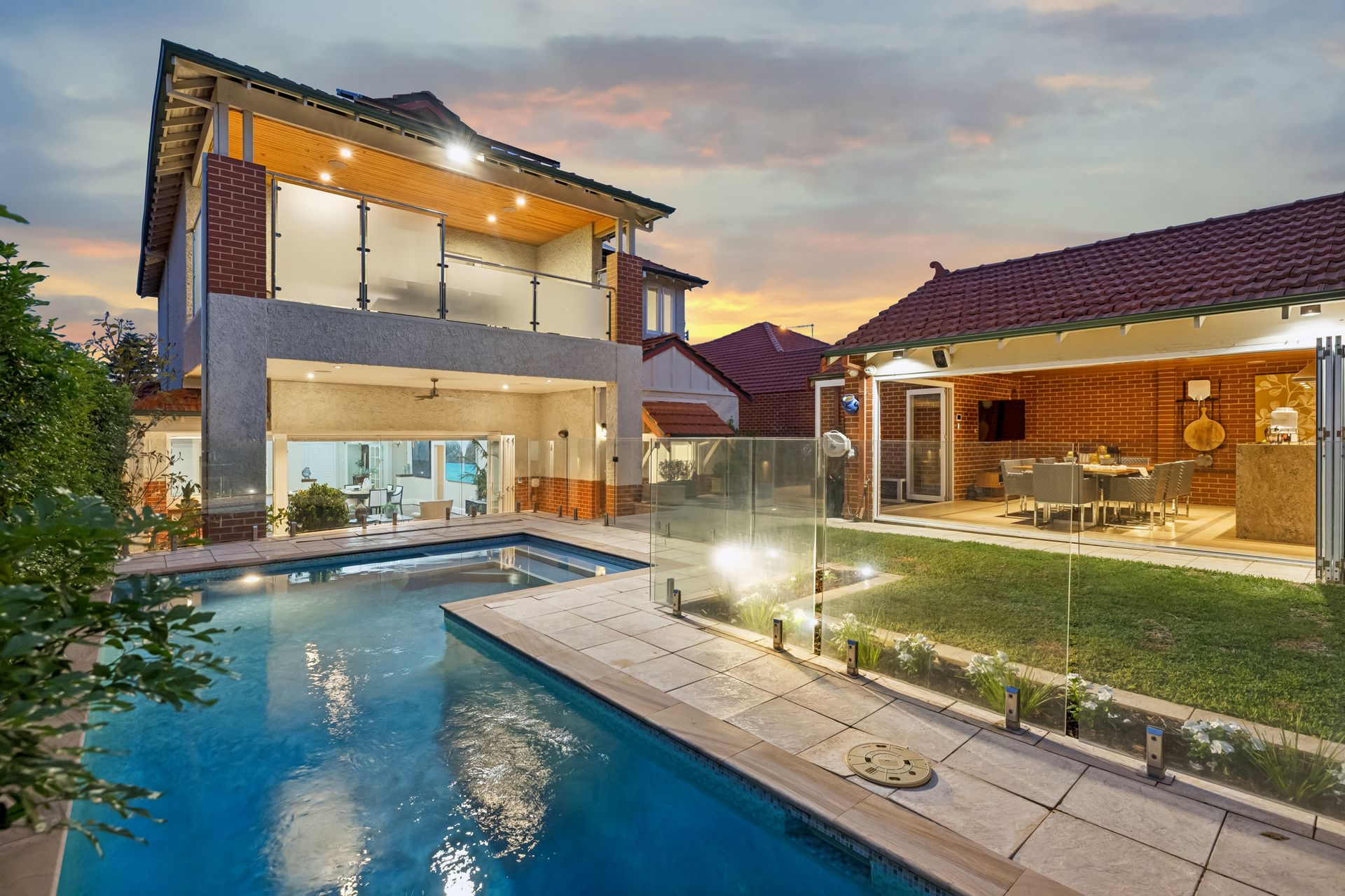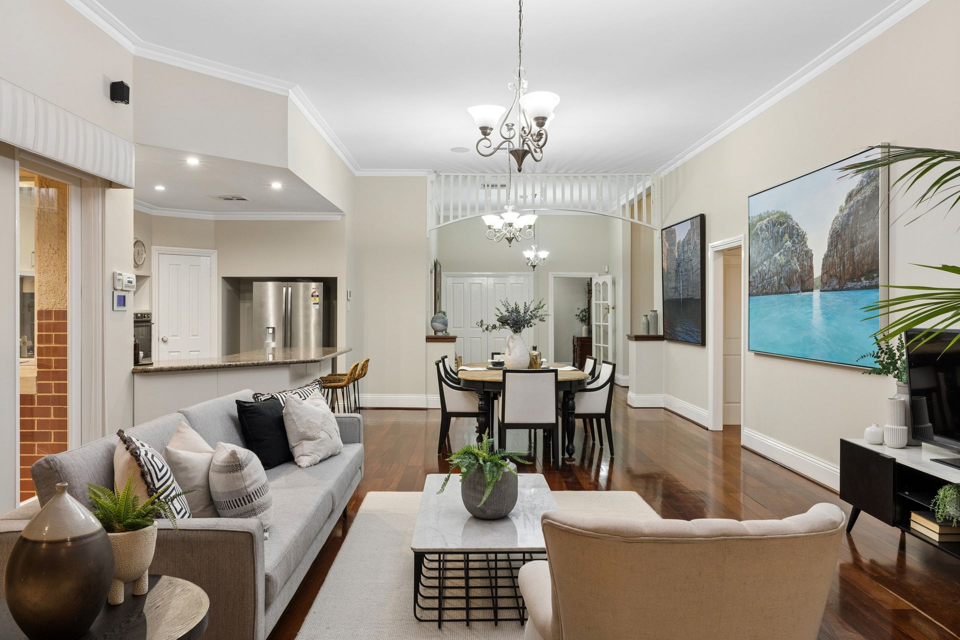 Positioned within one of Perth's most coveted blue-chip enclaves, this exceptional family residence delivers an impressive combination of space, elegance and lifestyle excellence. Spanning two expansive levels, the home offers five to six generously sized bedrooms and an abundance of living zones, including two substantial areas on the ground floor and a private theatre room upstairs perfect as a children's retreat or an ideal wing for extended family or returning adult children. A stunning Jarrah staircase forms a striking architectural centrepiece, adding warmth and character as it connects the home's beautifully designed levels.
