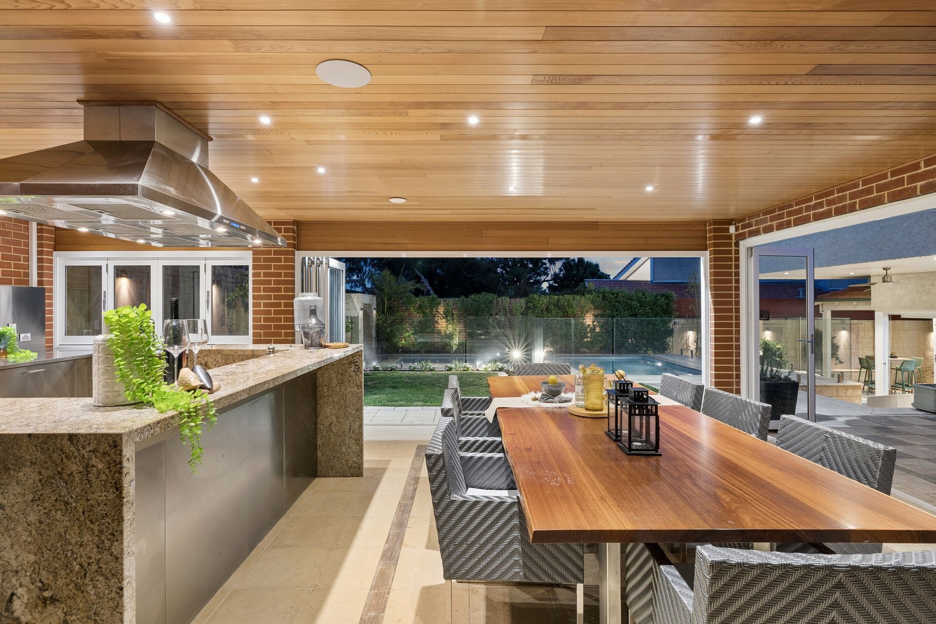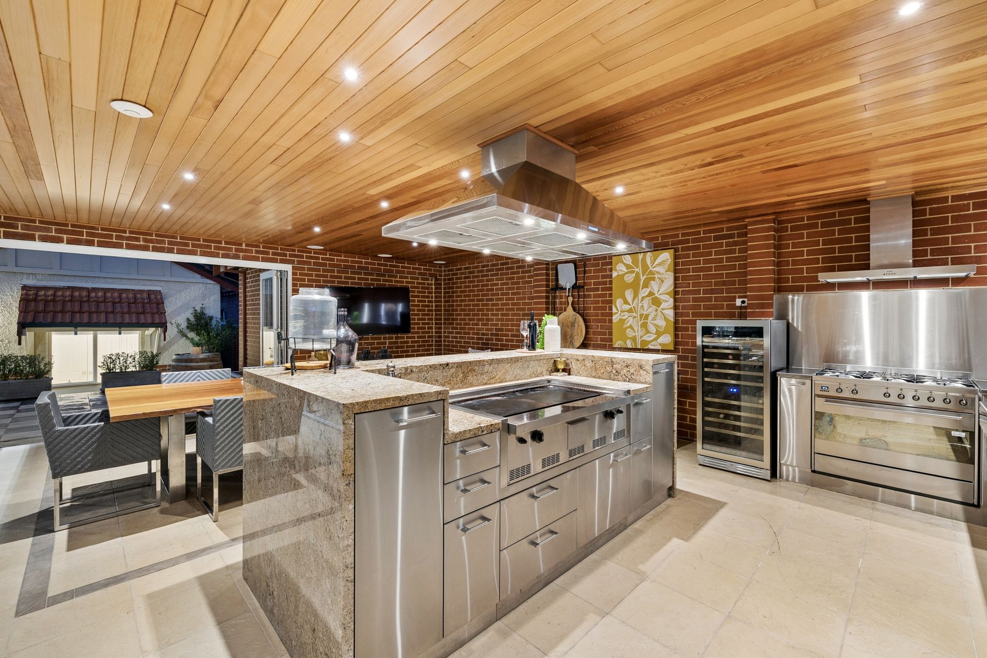 • Includes commercial grade pizza oven, teppanyaki hotplate with stunning stone bench tops with waterfall edges