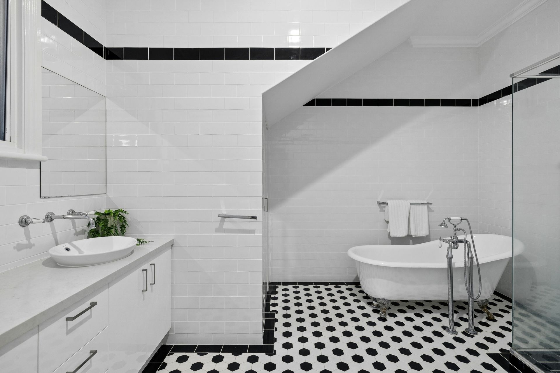 • Master bedroom with ensuite bathroom with claw-foot bathtub